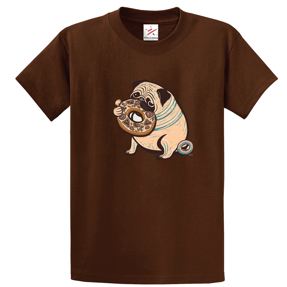 Pug Dog Eating Donut Unisex Kids and Adults T-Shirt