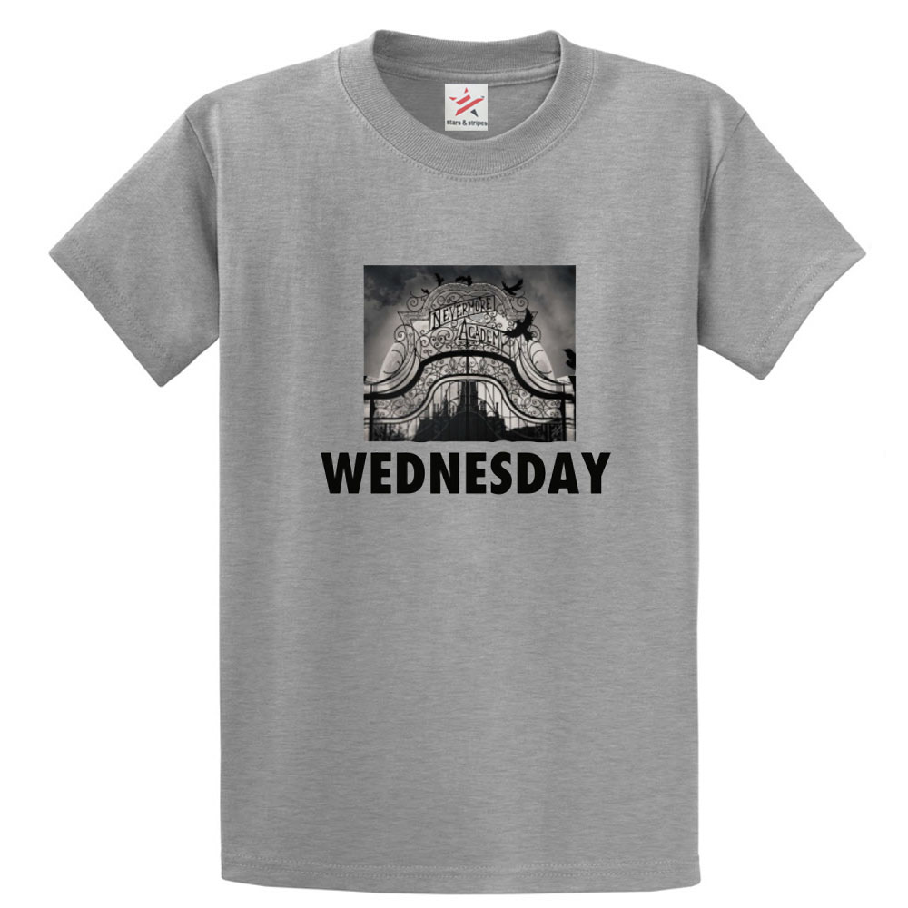 Addam Nevermore Academy Gate Graphic Print Logo Unisex Kids and Adults T-Shirt For Dark Humor Lovers