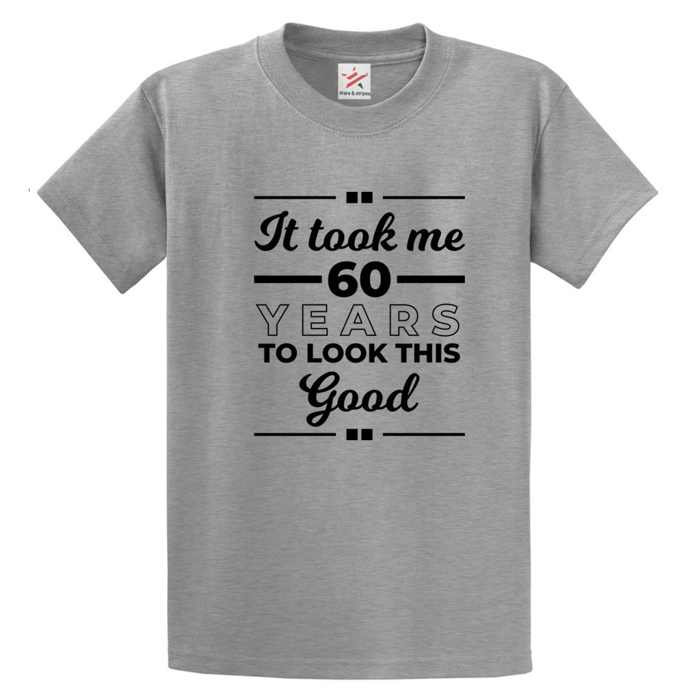 The "It look Me 60 years " T-shirt in white is a comfortable and breathable unisex crew neck T-shirt with a fun print that's perfect for celebrating the festival of colors in style. You can pair it with your favorite jeans, shorts, or skirts and get ready to immerse yourself in the joy and spirit of Holi. All these soft cotton t-shirts have twin needle stitch detail on the neck, sleeves and hem. It makes ideal gift ideas for partner, boyfriends, friends birthday or festive gift.
