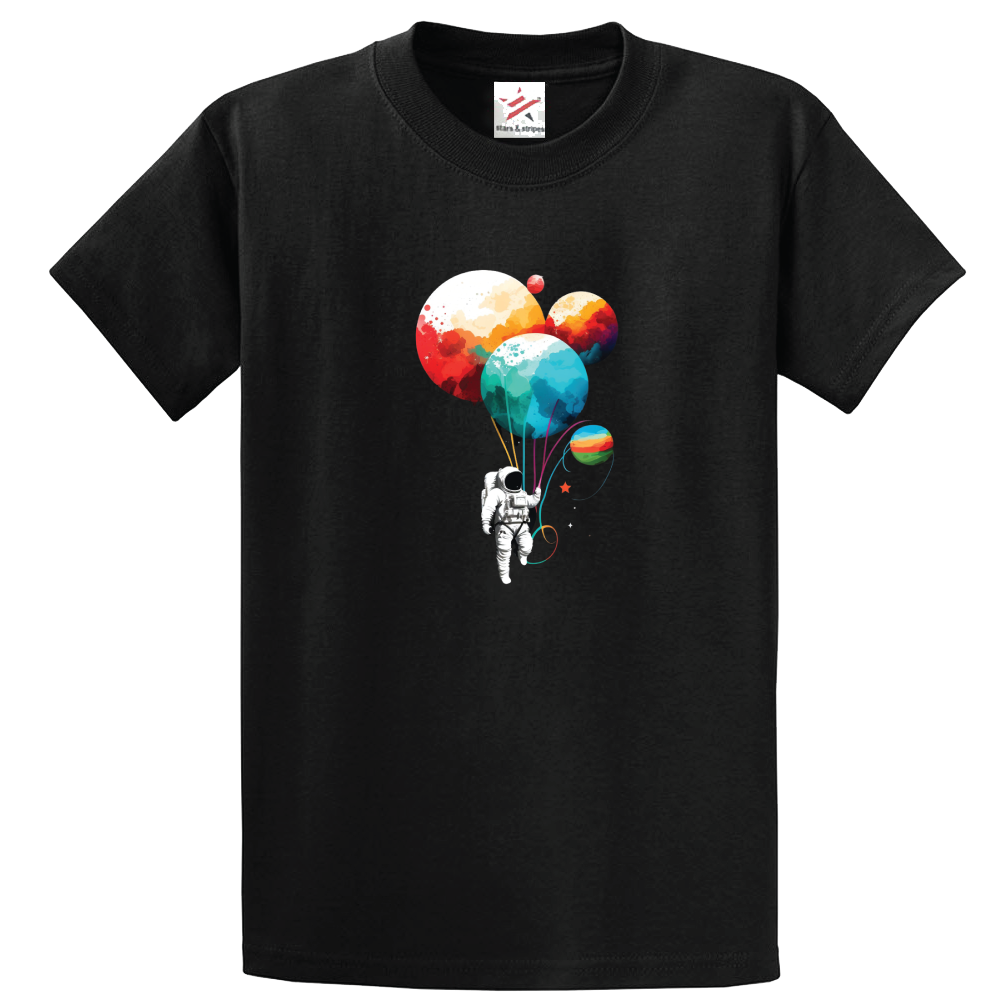 Spaceman Flying Balloon Space Unisex Kids and Adults T-Shirt