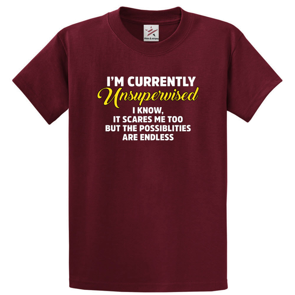 I'm Currently Unsupervised I Know, It Scares Me Too But The Possibilities Are Endless Unisex Classic Kids and Adults T-Shirt