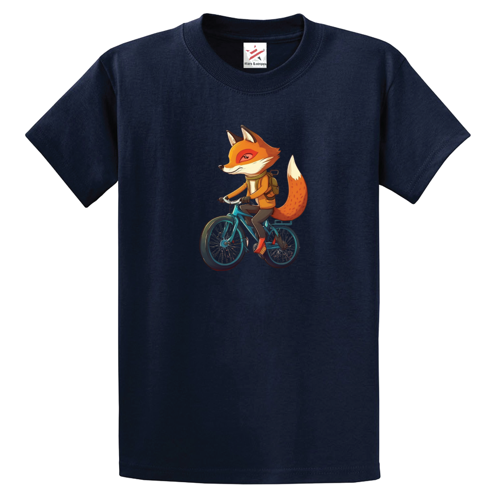 Fox Riding Bicycle Unisex Kids and Adults T-Shirt