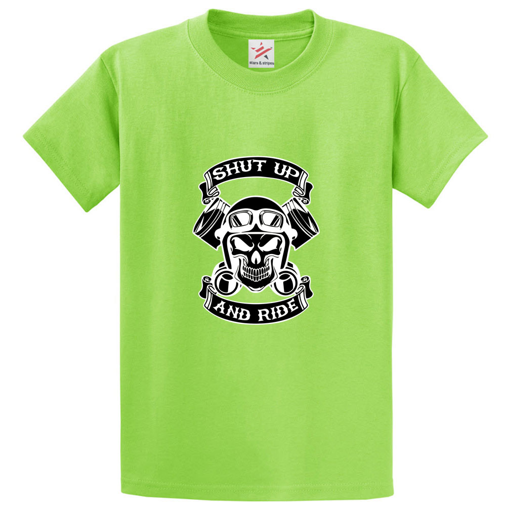 Shut Up and Ride Skull Biker Unisex Kids and Adults T-Shirt