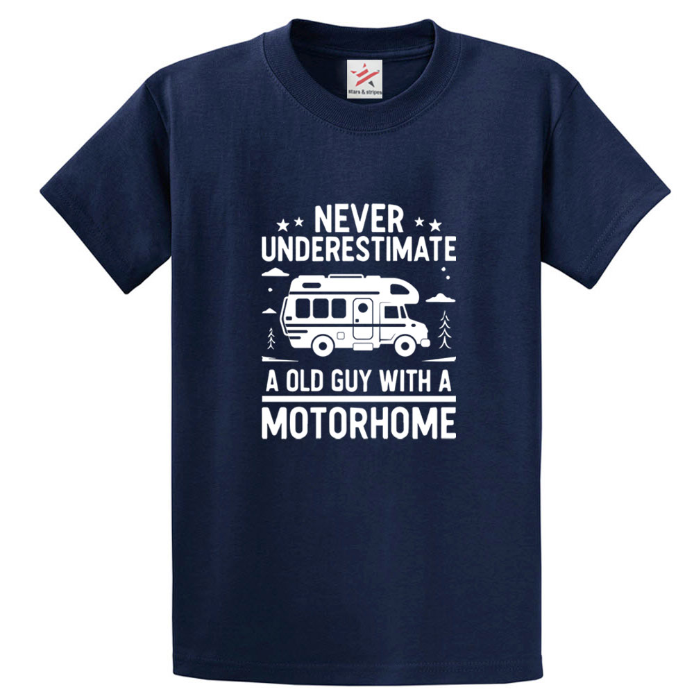 Never Underestimate A Old Guy With A Motorhome Funny Tee Unisex Kids & Adults T-Shirt