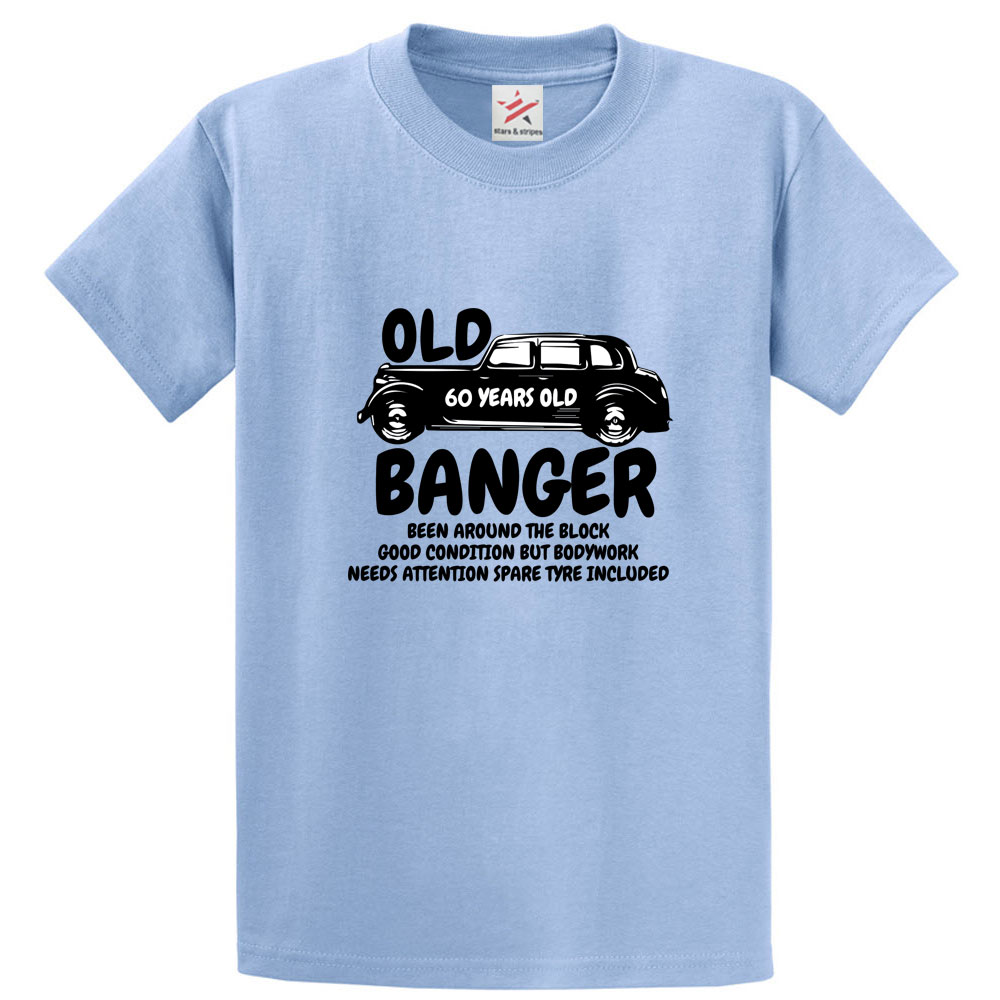 This is a brand new 60 Years Old Banger Been Around the Block Good Condition But Bodywork Needs Attention Spare Tyre Included funny t-shirt and is printed with detailed print. It comes in a range of colour and sizes. All these soft cotton t-shirts have twin needle stitch detail on the neck, sleeves and hem. It makes ideal gift ideas for partner, boyfriends, friends birthday or festive gift.