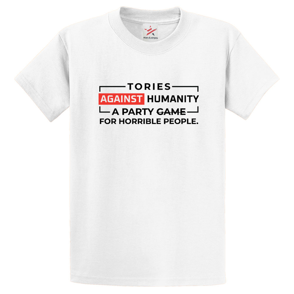 Tories Against Humanity A Party Game For Horrible People Graphic Print Style Political Protests Unisex Kids & Adult T-shirt